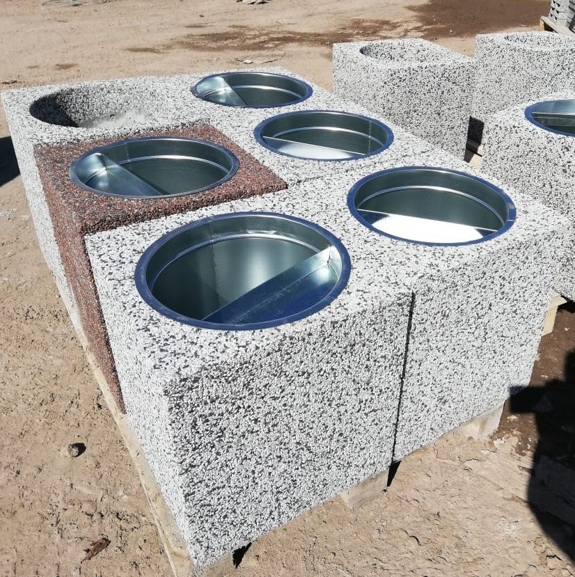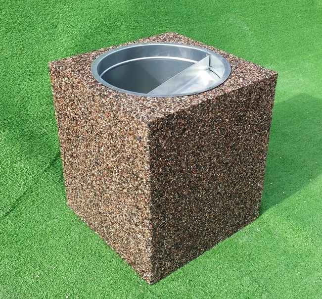 Оригинальная европейская урна, легко вписывающаяся в любой облик современного города, аккуратно подчеркивая все эстетические качества ландшафтного дизайна. Широкая цветовая гамма позволяет идеально подобрать цвет соответствующий окружающей среде. Техническое описание: Бетонно-монолитная урна с фактурой из натурального камня. Урна имеет четырехугольную форму. Внешний фасад урны имеет фактуру: мрамор, гранит, галька фракция от 3 мм до 15 мм или бетон, крашенный или пигментированный бетон. Вкладыш оснащен пепельницей, которая также выполняет функцию ручки для удаления вкладыша из урны. Вкладыш с пепельницей изготовлен из оцинкованной стали.