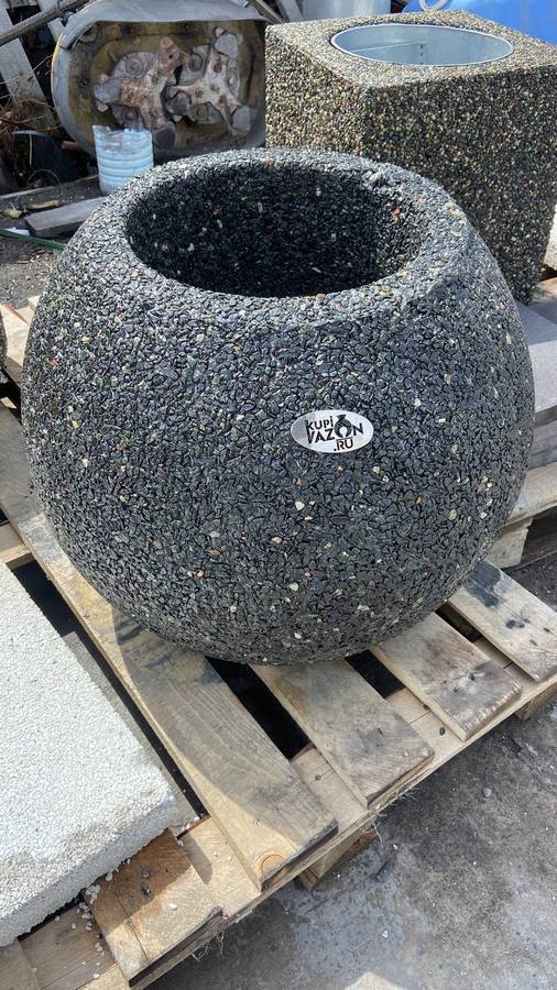 Данный вазон идеально подходит для выращивания цветов. Изделие выполнено в виде усеченной сферы с фактурой из натурального камня. Для вазона можно выбрать фактуру: габбро-диабаз, красный гранит, московский гравий, мрамор "Шахматка ", питерский гравий, серо-красный гранит, чистый бетон. Присутствует широкий выбор цветовой гаммы для идеального подбора цвета, подходящей для окружающей среды. Цвет может быть выбран по индивидуальному желанию заказчика из предложенных.