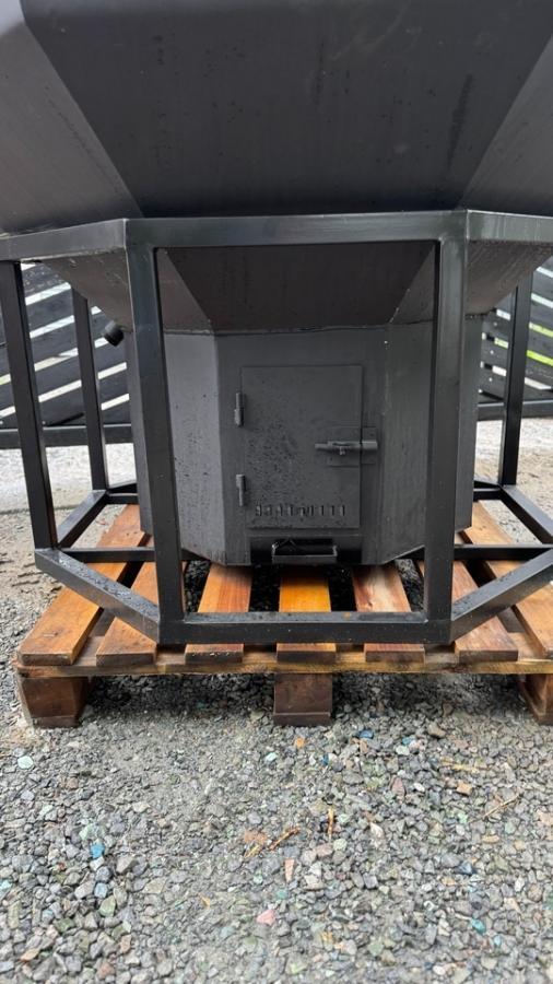 База включает чашу 2000х2000 мм (8 граней) из нержавеющей стали, мощную печь на черном металле с дымоходом и полную внешнюю отделку натуральным камнем по выбранной Вами палитре.