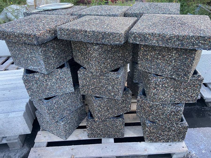 Размеры: длина 30 см, ширина 30 см, высота 63 см Вес: 65 кг Три блок-пакета и столбовая крышка дают высоту 2 метра. Блоки изготавливаются монолитными, т.е. состоят на 70% из крошки натуральных камней (гальки), она же является армирующим элементом, придающим дополнительную прочность. Визуальное восприятие обсыпки блока камнем обманчиво, природный камень равномерно заполняет весь объем блока, а мы лишь открываем его фасадную часть.